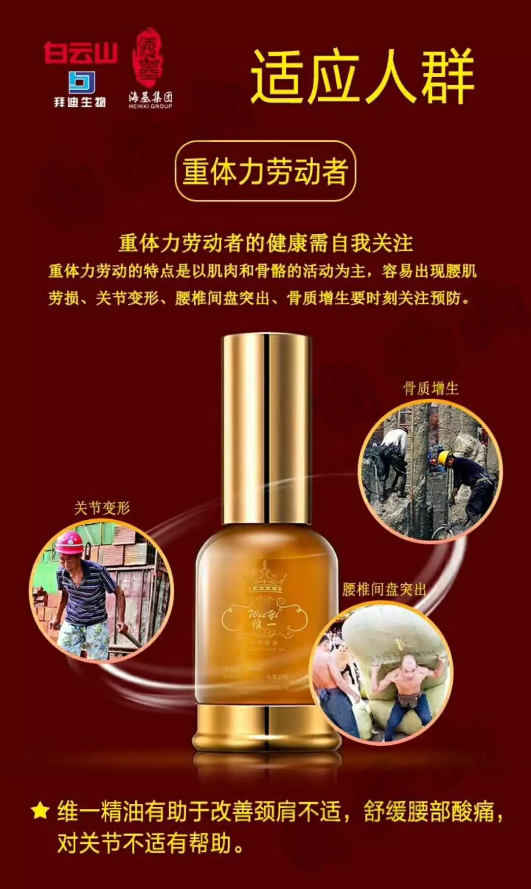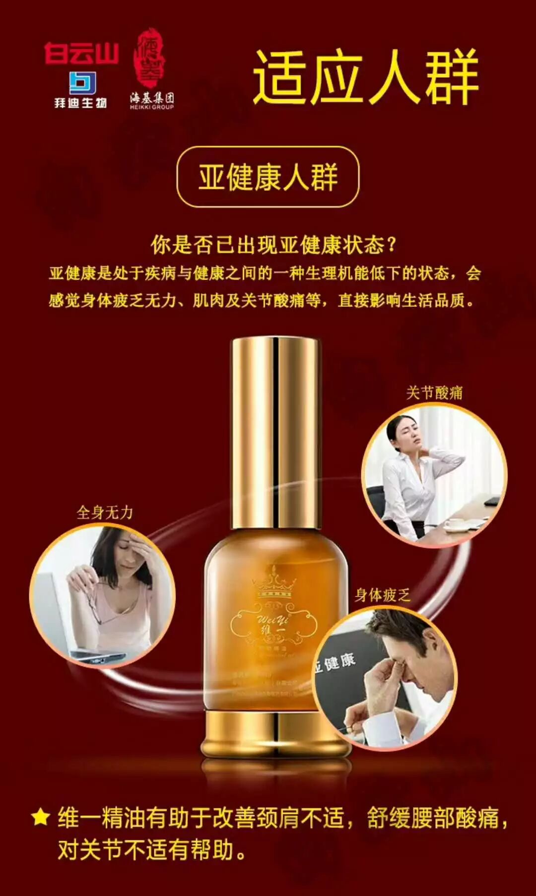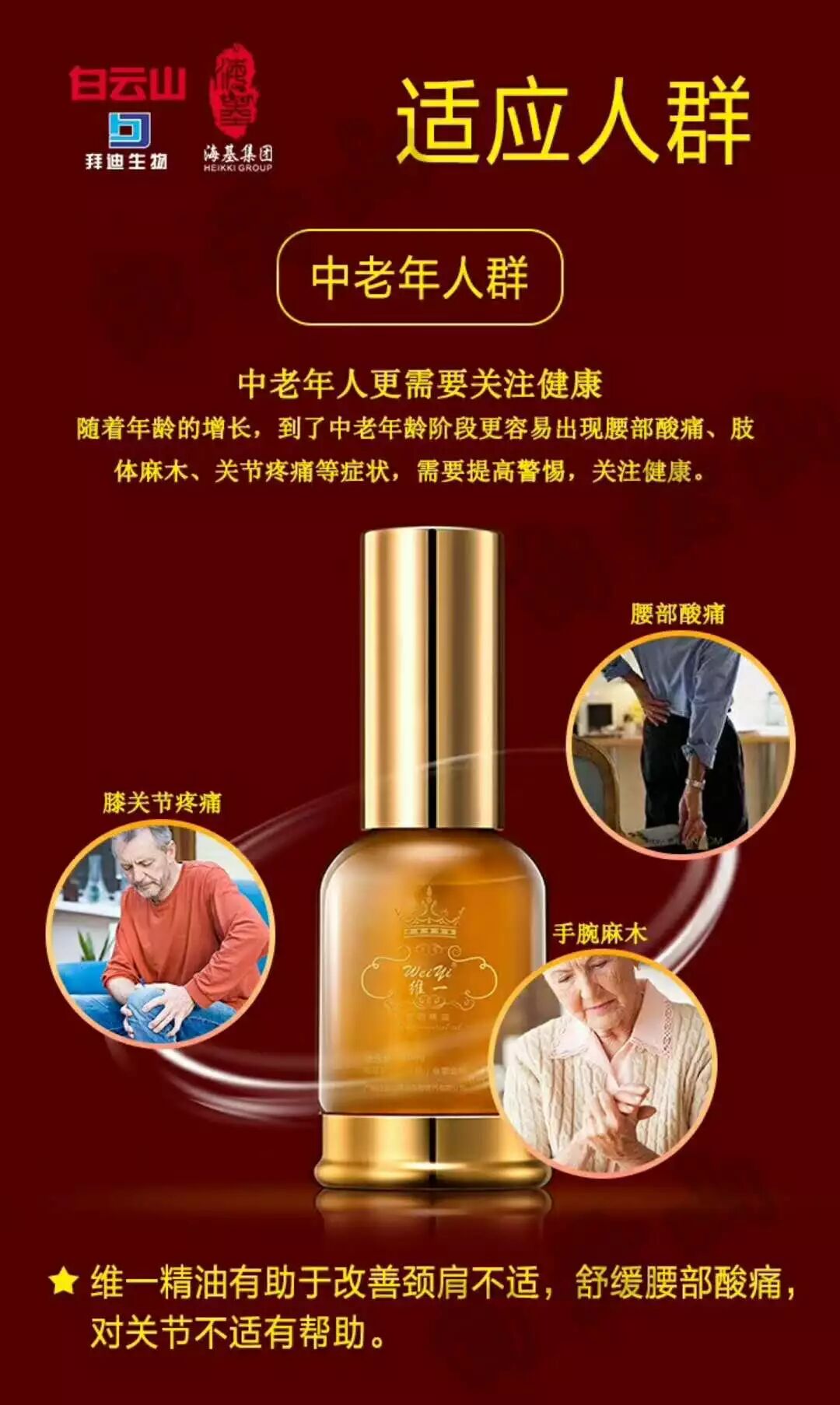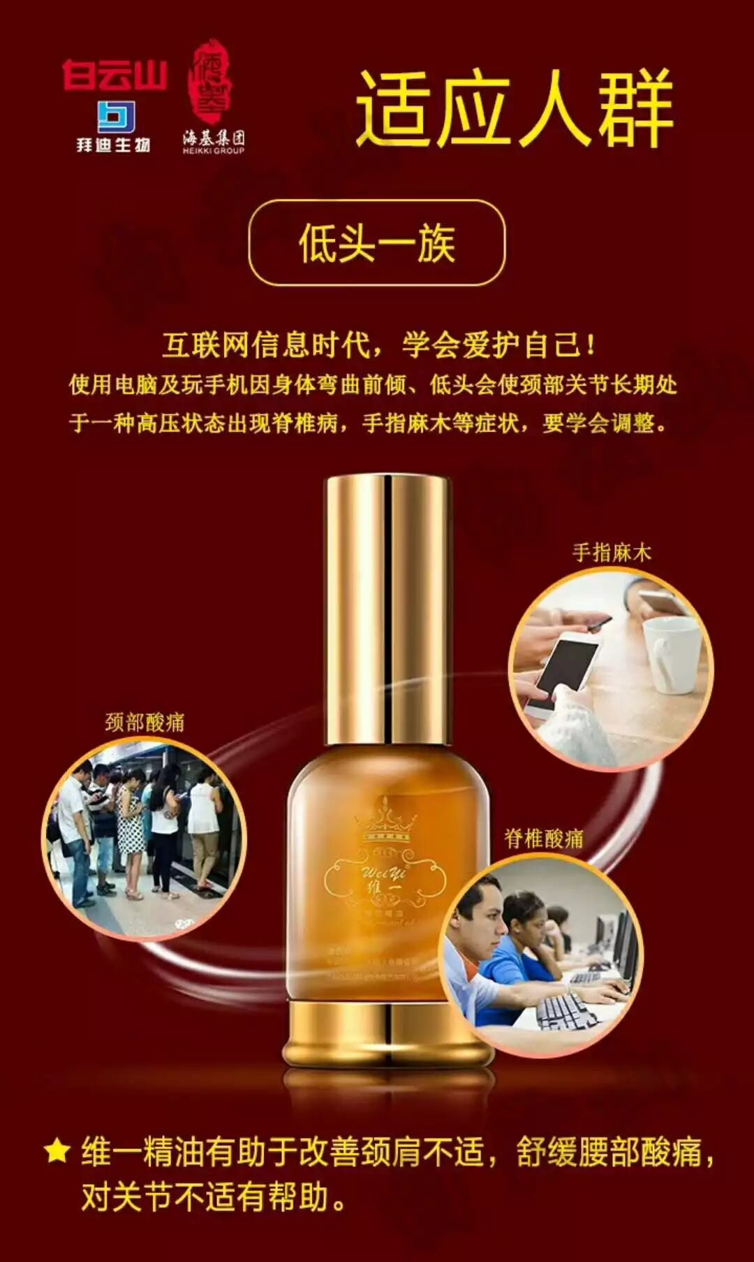 白云山维一植物精油是广药白云山和海基集团联合推出一款针对低头一族、久坐一族、办公室人群、中老年人群、重体力劳动者、亚健康人群等各类颈、肩、腰、腿、疼痛的产品!