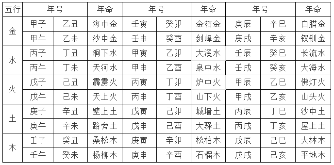“六十花甲子”用在年上叫“纳音五行”,是根据乐经中的五音十二律而来,属于偏五行,只作参考用,因为每两年都是同一个五行,所以算命还得看八字总体情况,不能以年上纳音五行给人定性,否则就是还没入门。