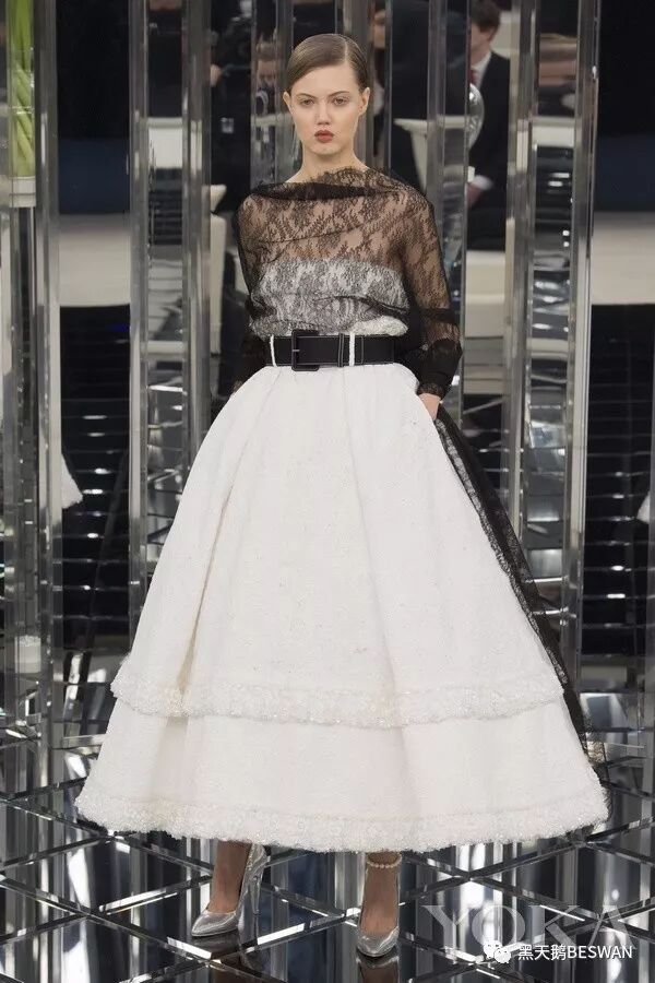 香奈儿高级定制大秀上,模特身着列维斯蕾丝长裙