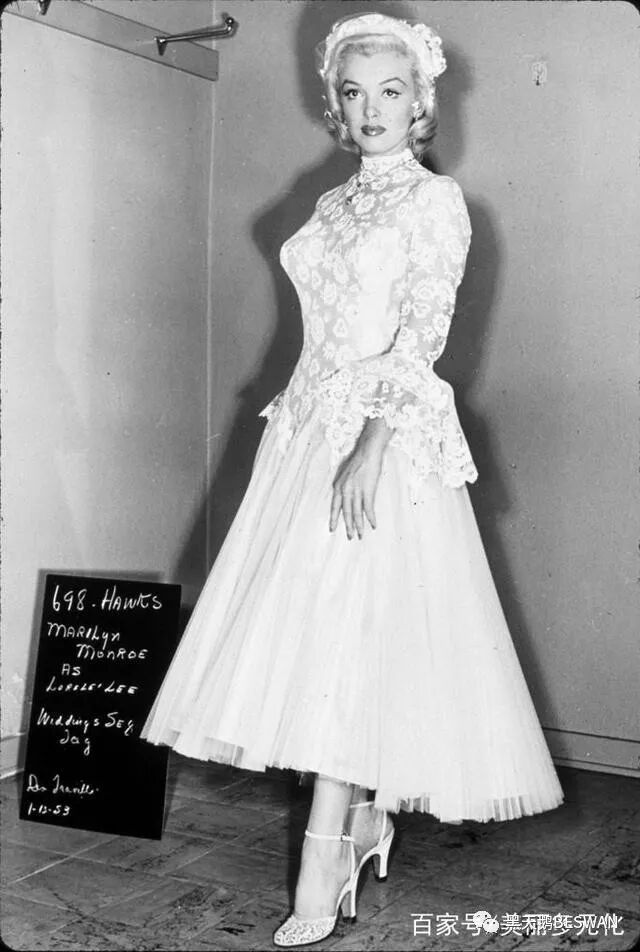 1953年,玛丽莲·梦露在电影《绅士喜爱金发女郎》中,通过穿着橘红色的紧身蕾丝裙,塑造出经典的性感金发美女形象。