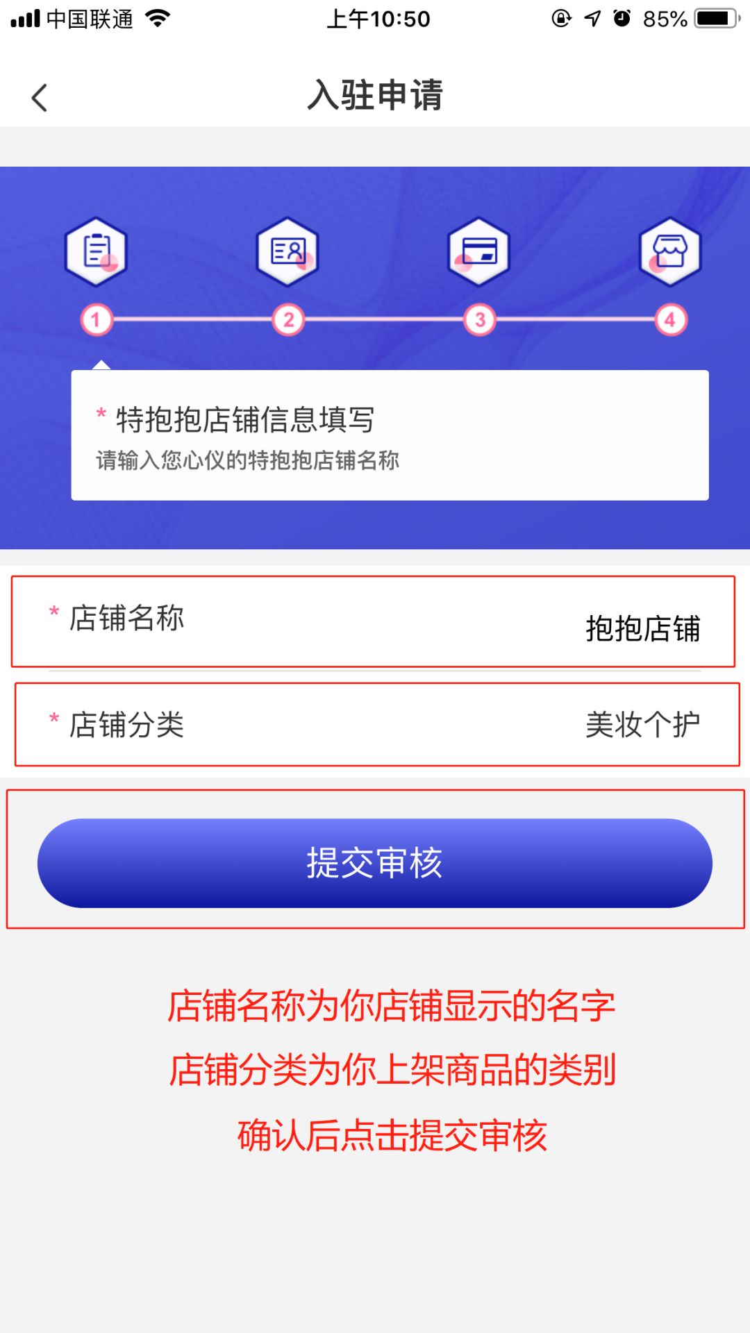 4. 填写“入驻申请”