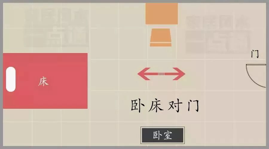 睡觉时讲究安全、安静,门是空气流通的通道,也是进出卧室的必经之地。如果卧室门正对着卧床,风水学上称为“门冲”,会使卧床周边的磁场难以保持稳定,人在休息的时候,气流很容易通过门缝冲击主人的身体,让人缺乏安全感,睡不安稳,对家人的身体健康十分不利。