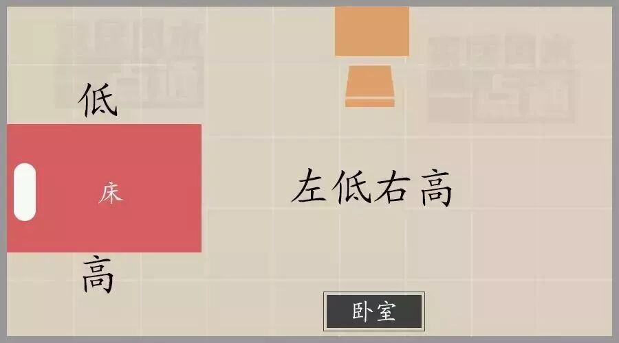 “左低右高”指卧床左右两侧的布置不可出现左低右高的布局。最常见的就是左边的床头柜比右边低,这就形成“白虎压青龙”的风水格局,会导致室内的磁场阴阳失衡,让夫妻之间的矛盾增加,不利于感情和睦。
