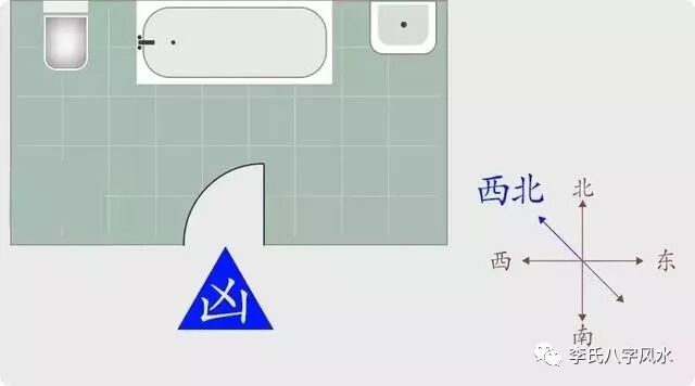 厕所在西北方 在五行生克理论中,“水泄金”,“水”对“金”同样是不利的,西北“乾金方”是不能有“水”出现的。在现代住宅中,厕所是用水较多的地方,如果西北方正好是厕所的话就犯了风水上的“污秽乾宫”,会使男主人身体、心灵不健康。