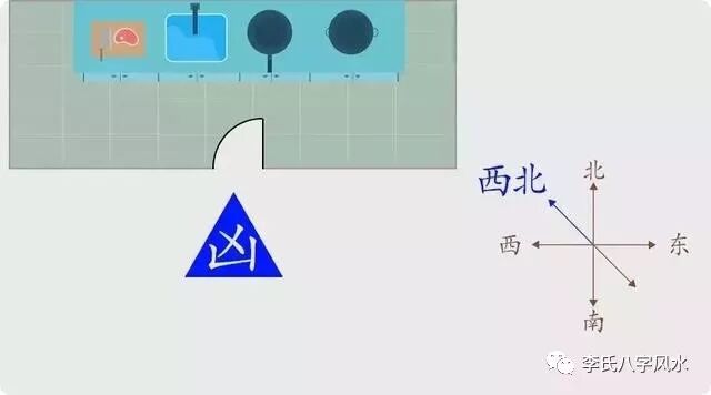 厨房在西北方 厨房、采暖炉是不能设置在住宅西北方的,因为厨房内的炉灶、冬季使用的采暖炉在五行上属“火”、西北方的乾卦五行属“金“,“火克金”凶,代表男人、父亲的“乾方”被火克制,就犯了风水上的“火烧天门”,会损伤男主人或是家中父亲的健康与寿命。