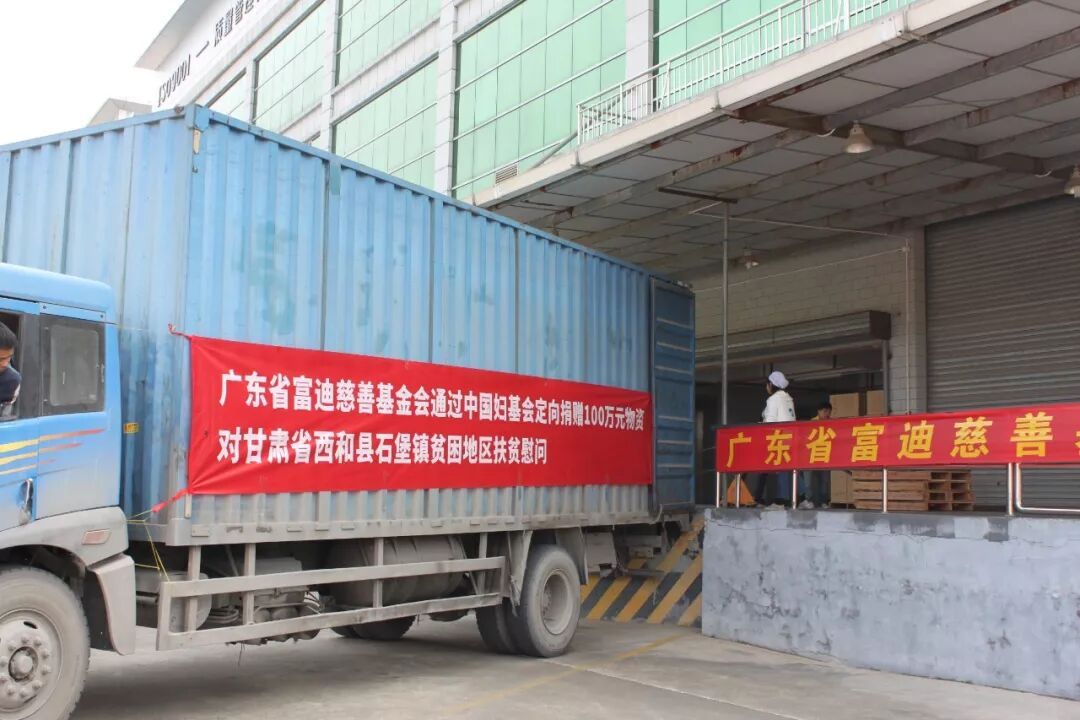 此次捐赠活动是广东省富迪慈善基金会通过中国妇女发展基金会定向对甘肃省西和县石堡镇贫困地区进行扶贫慰问的专项活动,捐赠的爱心物资价值100万元。