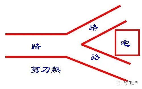 3、剪刀煞:由三条或四条道路相交形成,如一把剪刀要把本宅剪掉似,主破财、损丁、意外受伤、伤灾。