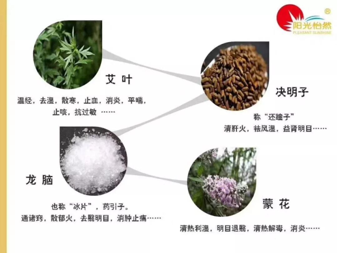阳光怡然护眼罩四味主要成份的功效: