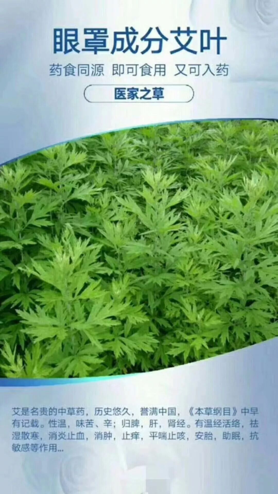 艾叶,温经通脉,起到一个中和作用,相当于和事佬,因为我们中药包中的决明子,密蒙花,冰片都属于凉药,艾叶,他就属于一位中和的温药,起到一个温经通脉,润燥止痒,消炎去翳的作用。