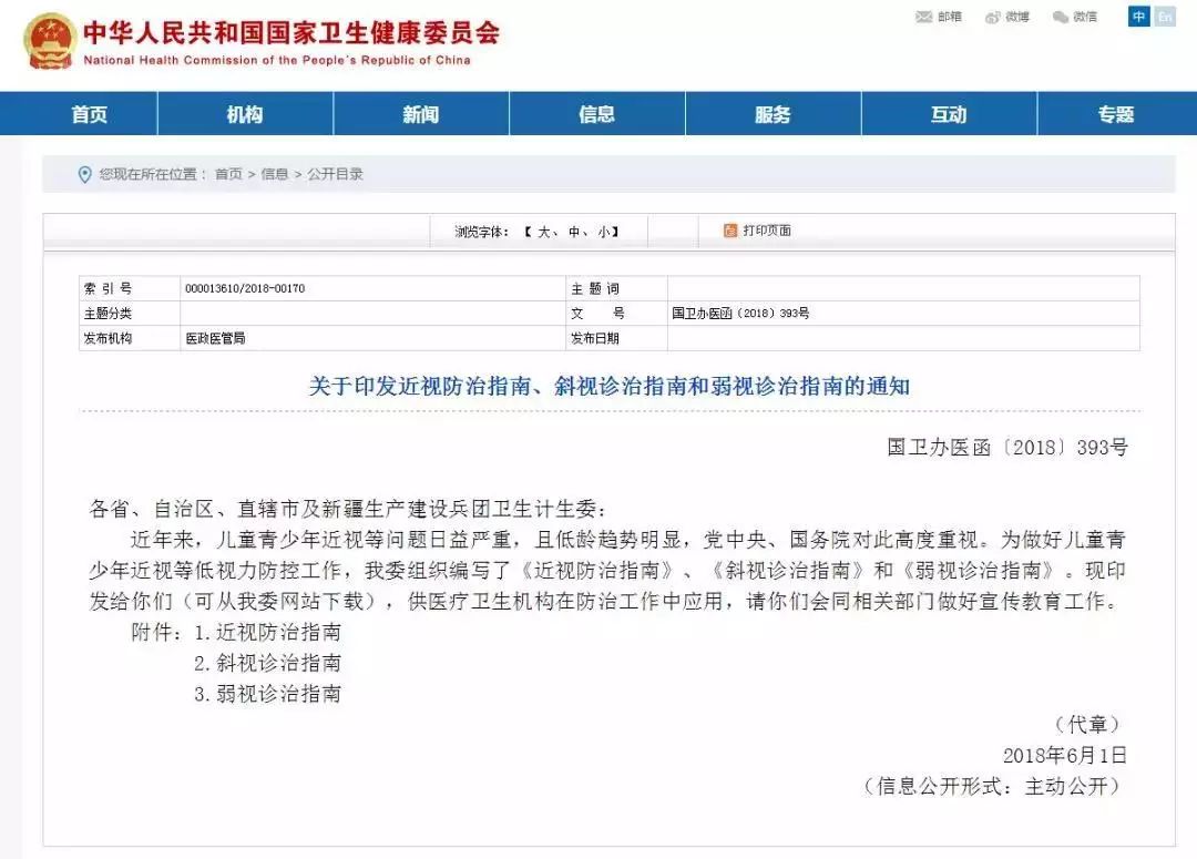 近年来,我国近视发生率呈上升趋势,近视已成为影响我国国民尤其是青少年眼健康的重大公共卫生问题。流行病学调查发现,病理性近视视网膜病变已成为我国不可逆性致盲眼病的主要原因之一。为做好近视的防治工作,制定本指南。