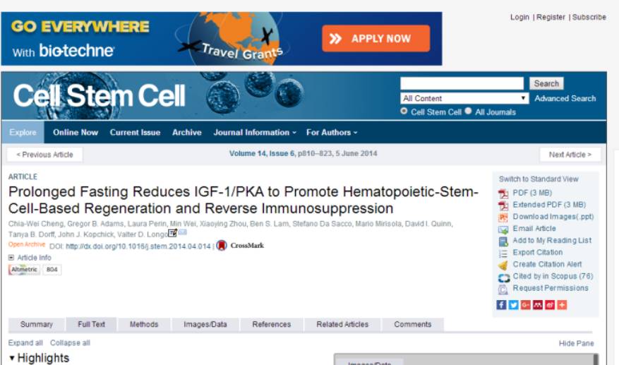 2014年6月5日,来自美国南加州大学的研究人员在世界最权威学术杂志《CELL》在线发表论文证实重大成果:周期性进行“卡路里管理饮食摄入”能有效减少内脏脂肪,并能延缓衰老。