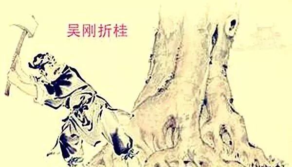 关于中秋节还有一个传说:相传月亮上的广寒宫前的桂树生长繁茂,有五百多丈高,下边有一个人常在砍伐它,但是每次砍下去之后,被砍的地方又立即合拢了。几千年来,就这样随砍随合,这棵桂树永远也不能被砍光。据说这个砍树的人名叫吴刚,是汉朝西河人,曾跟随仙人修道,到了天界,但是他犯了错误,仙人就把他贬谪到月宫,日日做这种徒劳无功的苦差使,以示惩处。李白诗中有“欲斫月中桂,持为寒者薪”的记载。