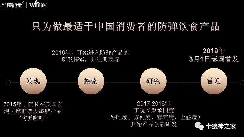 那“防弹咖啡”的名字一起,立刻大家就会有感觉,卡瘦当年的名字也是一样。一开始也想不出来名字,后来突发灵感,说我们的理论是卡路里管理,如果卡路里管理让人们健康的瘦下来,那么这个名字不就可以叫“卡瘦”吗?卡瘦的名字就是这么来的,那“防弹咖啡”的名字也是受到了灵感而来