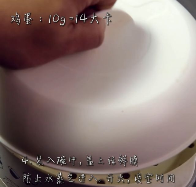 4、装入碗中,盖上保鲜膜,防止水蒸气进入。开火,设定时间