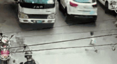 一辆货车驶来,孩子迅速被撞且卷入车轮。