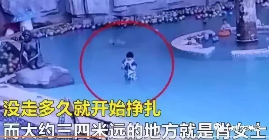 完全没注意到4岁的儿子从浅水池进入深水池。