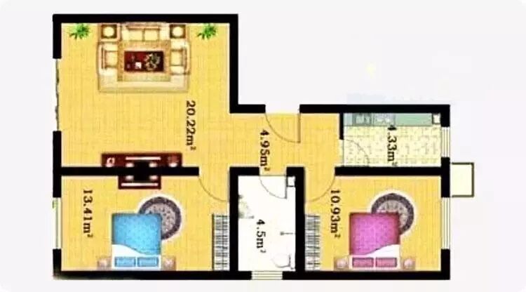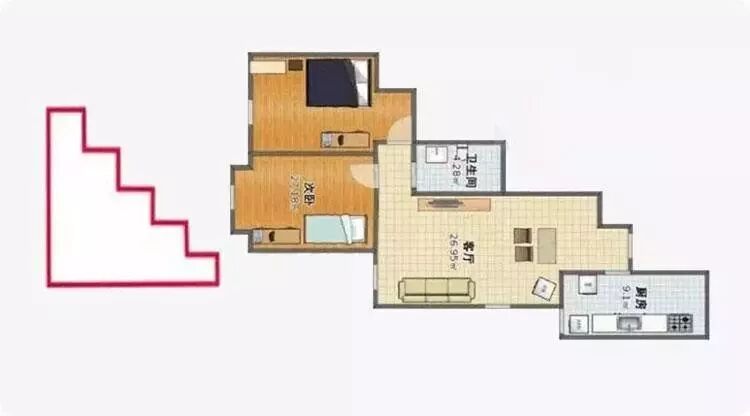 这个户型倒是讨了个好彩头,只是有点跑偏了,节节高升用至此处,确实显得有些华而不实了。而且这种户型狭长又不实用,明明家里面积不大,跨度却不小,容易缺少家庭的温馨感。