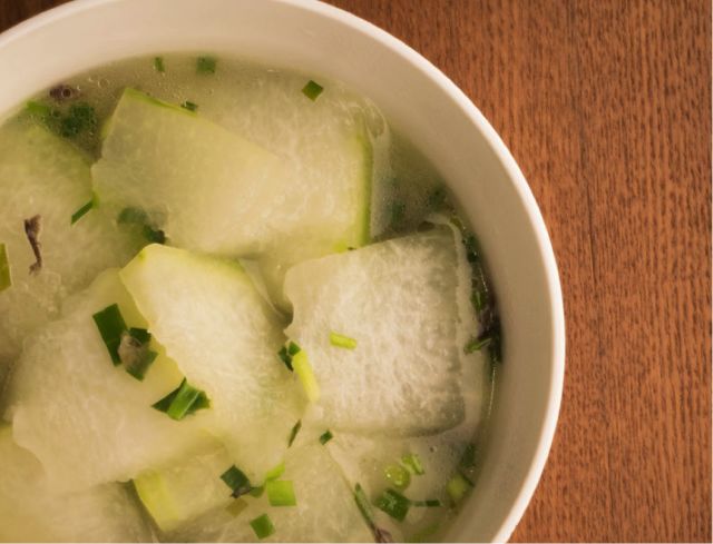 冬瓜是一种热量极低的减肥蔬菜,它含有丰富的膳食纤维、葫芦素、维生素B2、钾和钙元素,对于减肥和消除水肿有很强的作用。它养胃性津、清降胃火,又因含有丙醇二酸,可以帮助抑制体内脂肪的堆积。春节大餐之后的正餐里,不如为自己做一碗清淡的冬瓜汤,帮你消脂减肥!