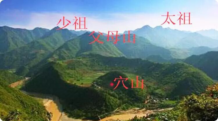 少祖山,即从太祖山,顺着一条龙背(山脉)走去,经过一段段起伏弯曲,时小时大,有时突然鼓起一个球状而且左右有山脉护送,行程渐渐由窄变宽,由宽变窄等千变万化的形状,其二、三节处,忽然突起高大山恋,此山即为少祖山。