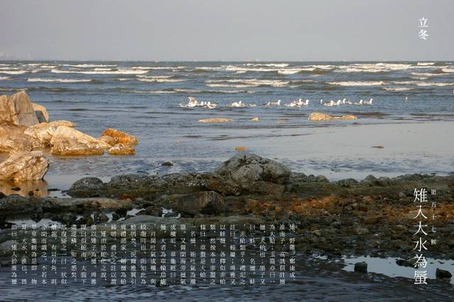 我国古代将立冬分为三候:“一候水始冰;二候地始冻;三候雉人大水为蜃。”