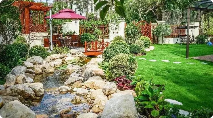 溪流是家居中的活水,最好是溪流蜿蜒流向屋内,在明堂前聚集,中间也可以安插石头等一些景观,让其更具美感。