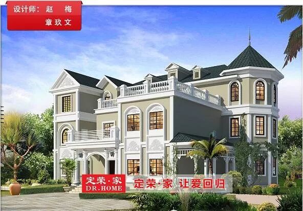 别墅说明:建筑面积269平米,七室四厅三卫。层高:一层高3米,二层高2.8米,三层高2.8米。尺寸:长10.2米,宽;9.9米