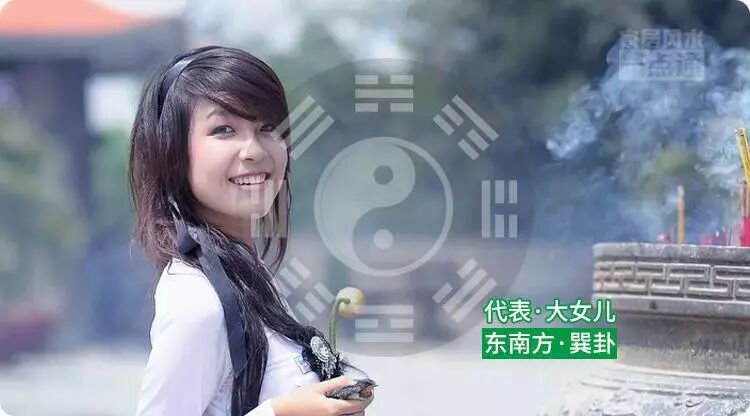 东南方在八卦中为巽卦,五行属木,是风水上的“财门方”,代表着家中财运,对应家中大女儿、属龙人、属蛇人。