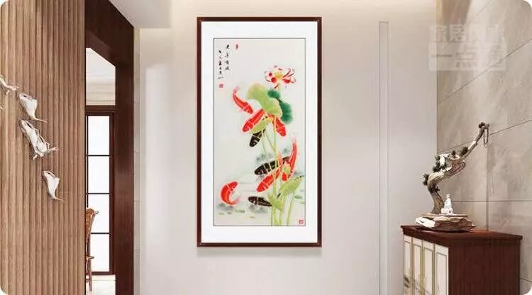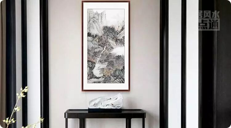 风水学上讲“山管人丁,水管财”,因此在进门处悬挂山水画,也可让家中财运旺盛,财源广进,帮家人迎来贵人,渡过难关。不过要注意,画中水流的走势,一定要流向屋内,不可直对大门,否则为泄财之局。
