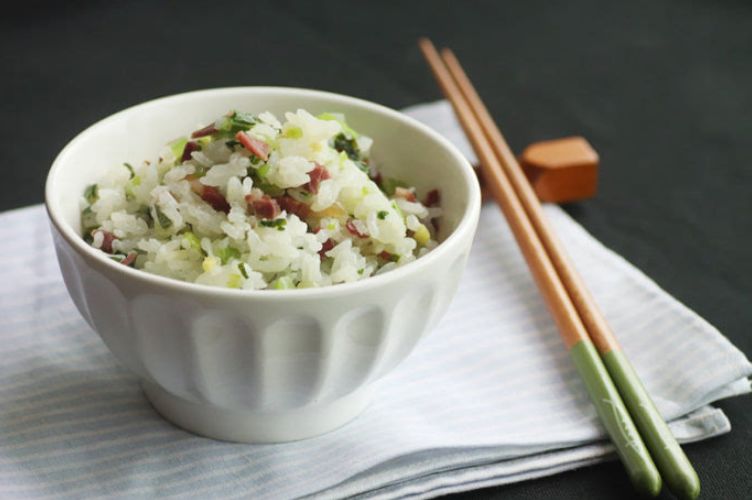 广州传统,小寒早上吃糯米饭,为避免太糯,一般是60%糯米和40%香米,把腊肉和腊肠切碎炒熟,花生米炒熟,加一些碎葱白,拌在饭里面吃。