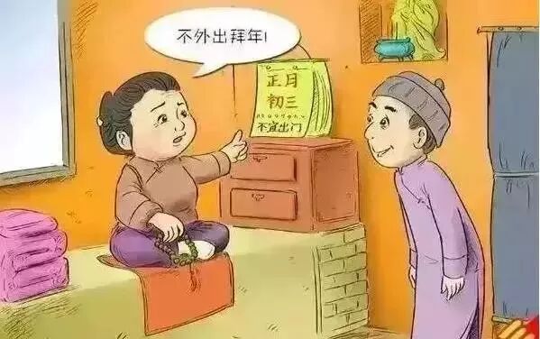 因“赤口”,正月初三一般人们不会外出拜年,以此避免与人发生口角争执。