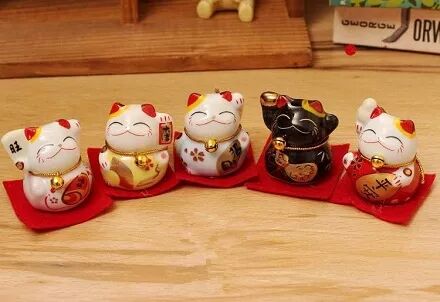 店铺使用招财猫的频率会比家宅的要高得多,因为前者更需要借助它的招财能量。摆放店铺的时候,由于招财猫是用来招揽客人,所以摆放门口是最好的。如果选择的是举左手的招财猫,则是客多财进的寓意。如果是举双手或者是双手举聚宝盆的招财猫,则是财富双收的含义。摆放店铺或者办公室,举左手的雄猫比较合适,有助于招财旺事业运。