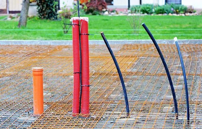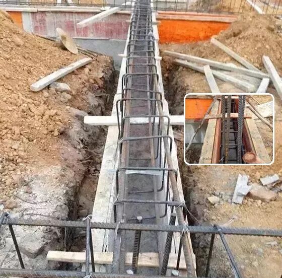 3 按照水电布置要求在条形基础内预埋管道,作为水电管线的通道。
