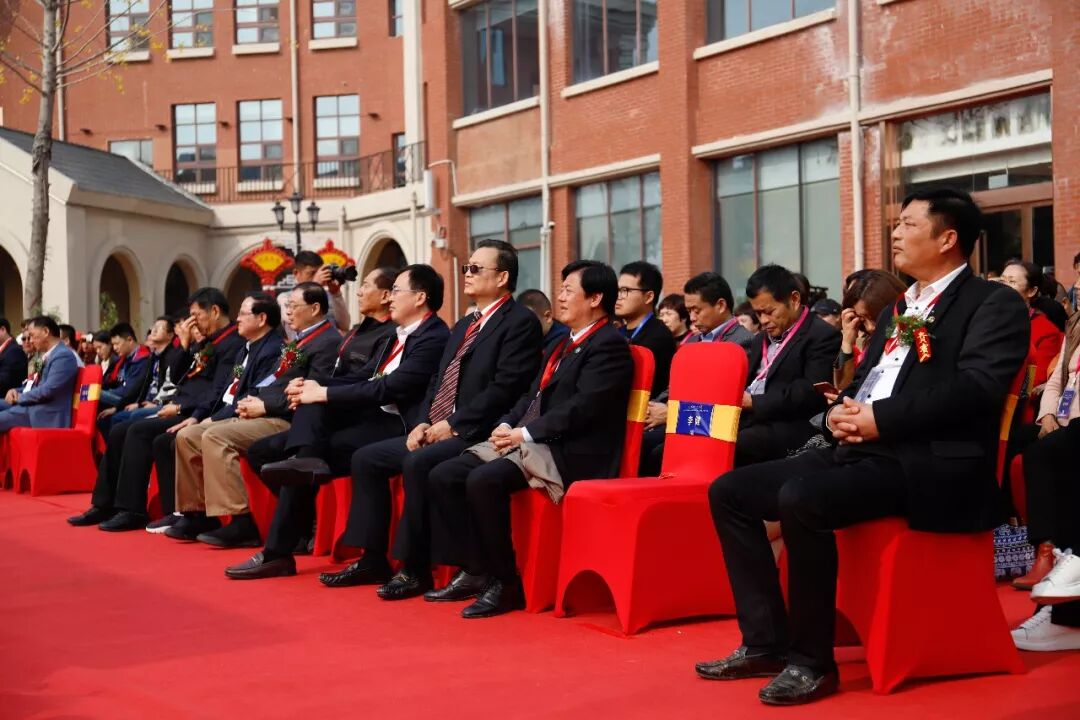 (山东省公安厅民警优抚基金会理事长任建军、宿迁市人大常委会预算工作委员会主任汪金普、山东省公安厅优抚基金会烟台专项基金管理委员会主任雷兴华、宿迁市湖滨新区党工委副书记钱信松、金天国际董事局主席祖明军、金天国际集团副总裁祖明权、金天国际名食养养生五谷品创中心总裁沈国锋先生、金天国际名食养地方名食品创中心总裁何浩民等领导为场景体验馆开业剪彩)
