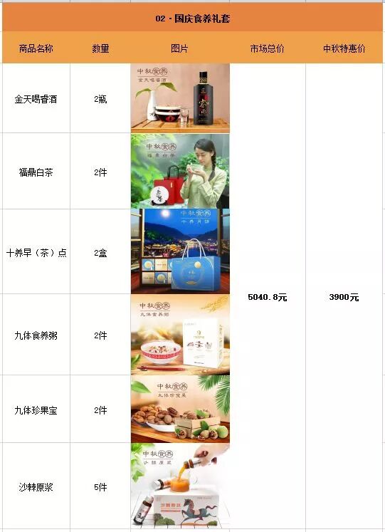 2、礼套内容:中秋食养礼套、国庆食养礼套、十养月饼礼套