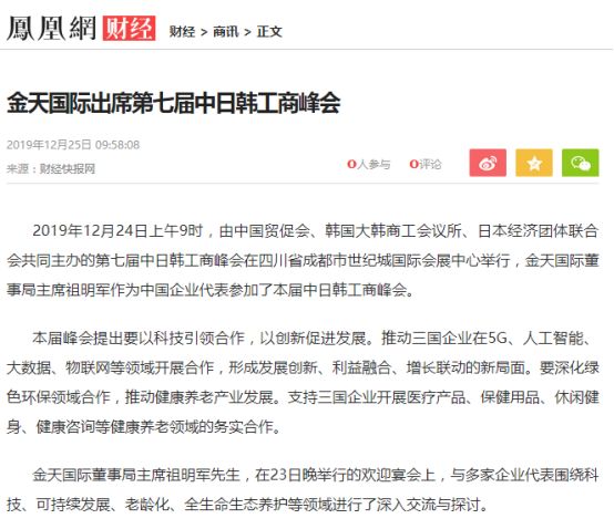 峰会期间,金天国际董事局主席祖明军先生立足中医产业国际化发展进程,与日韩工商界人士进行了深入探讨,由金天国际集团首创的全生命生态养护健康管理系统受到日韩工商界和媒体的广泛关注。