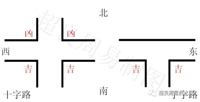 但也不是说所有路口都是吉的,一般来讲分为两吉两凶,十字、丁字路口在摊位的东北、西北吉,在摊位的西南、东南凶,摊位对应路口如下图:
