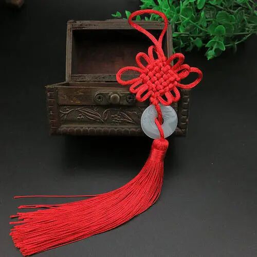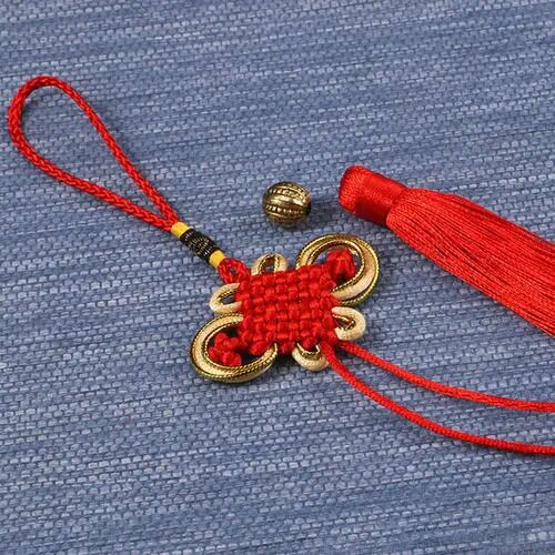 在新婚的贴钩上,装饰一个“盘长结”,寓意一对相爱的人永远相随相依,永不分离。在玉佩上装饰一个“如意结”,引申为称心如意,万事如意。在扇子上装饰一个“吉祥结”,代表大吉大利,吉人天相,祥瑞、美好。在剑柄上装饰一个“法轮结”,有弃恶扬善之意。在烟袋上装饰一个“蝴蝶结”,“蝴”与“福”谐音,寓意福在眼前,福运迭至。端午节用五彩丝线编制成绳,挂在小孩脖子上,用以辟邪,称为“长命缕”。