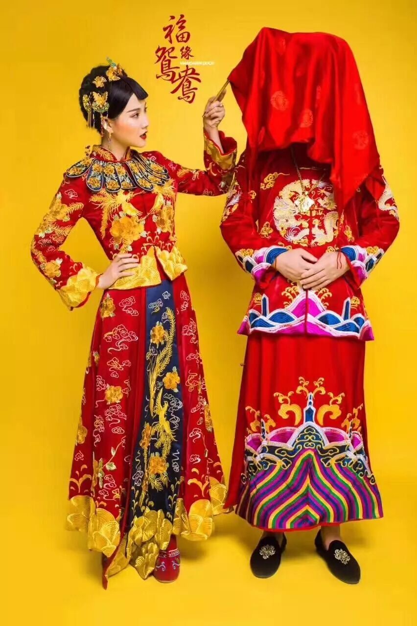 白色的气派很适合讲究生活质量的小资新娘,局部滚边的红色,或是大面积的银光亮片,会显得非常的雍容华贵;不因循守旧的新娘可以大胆的考虑黄色与橘黄色,会非常的亮丽哦。