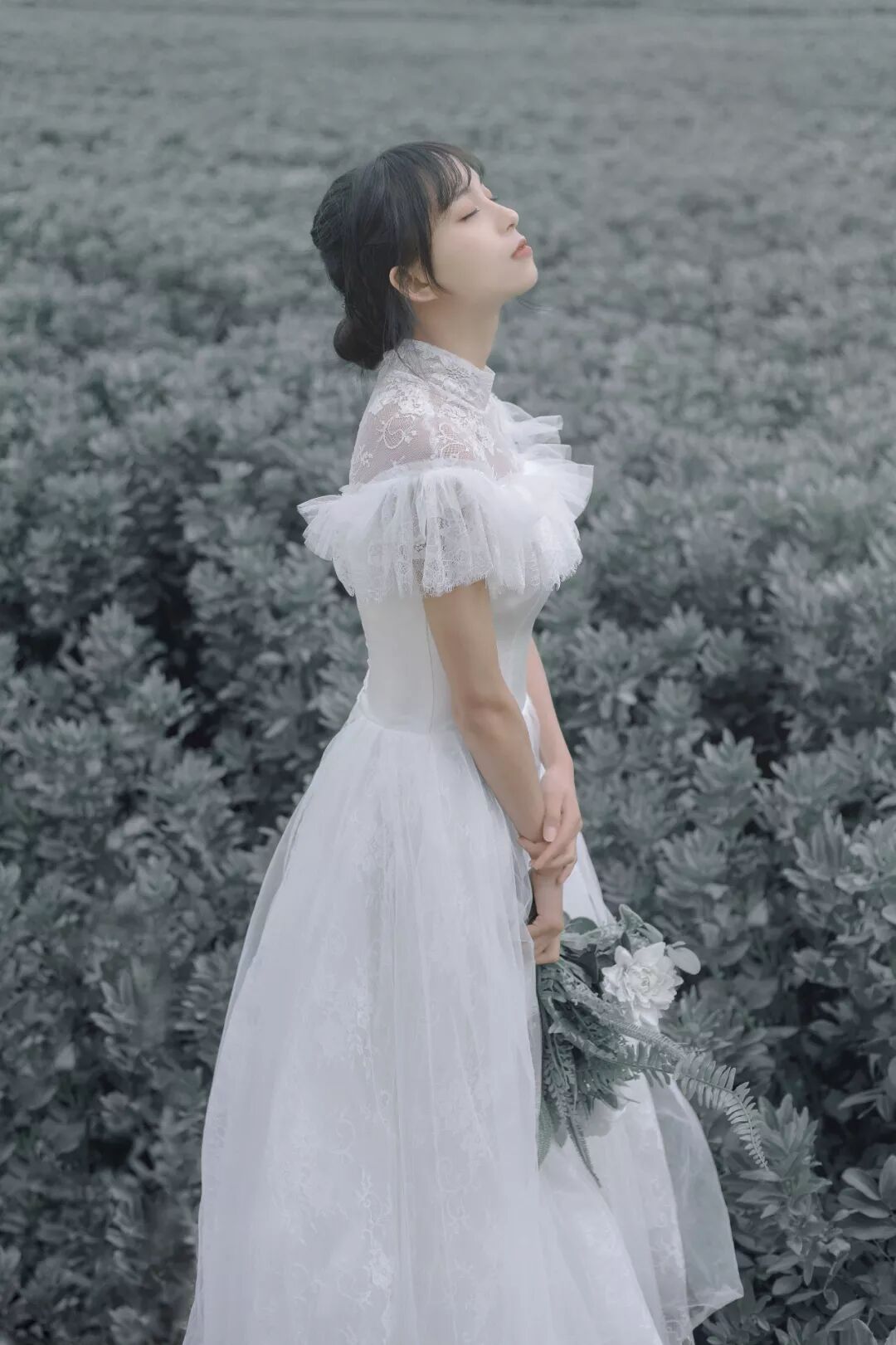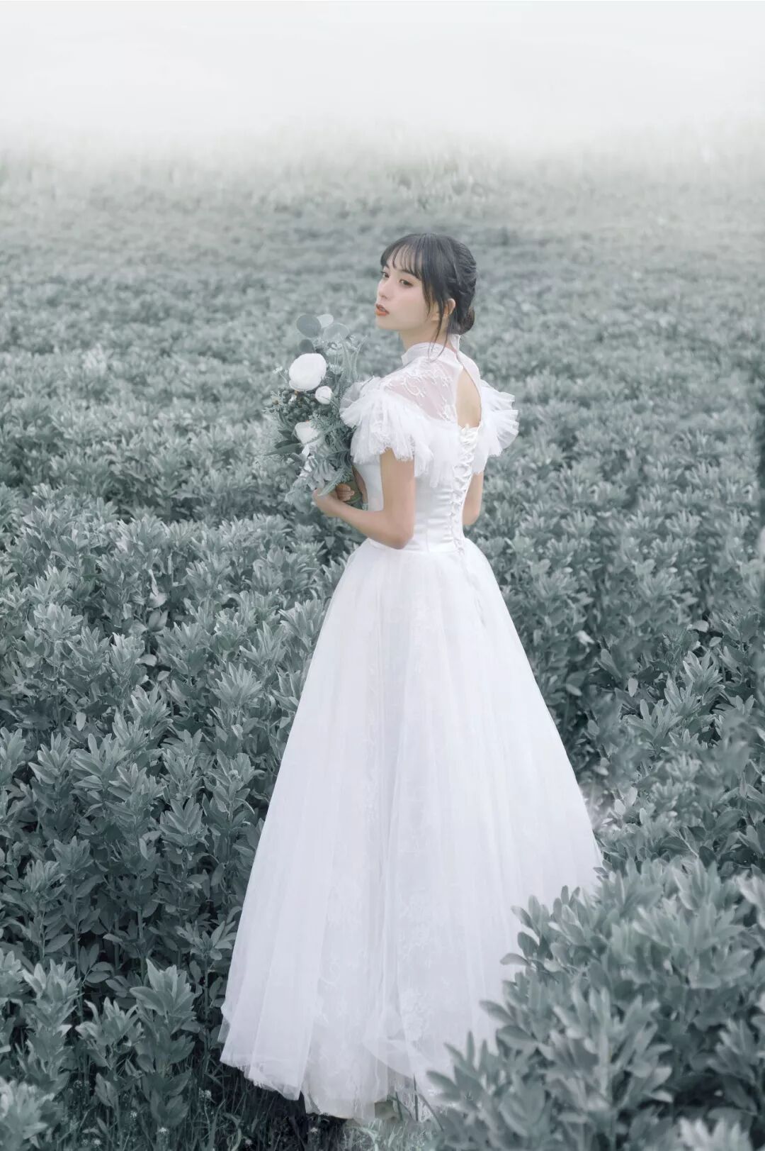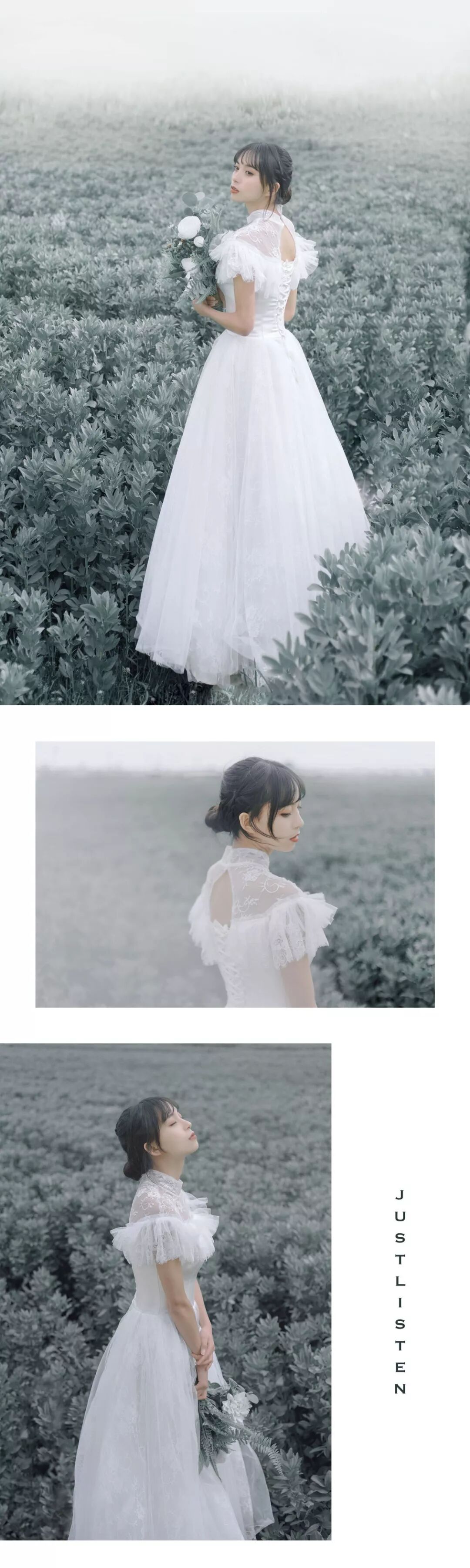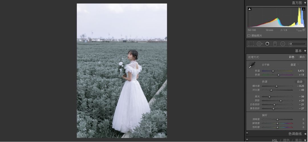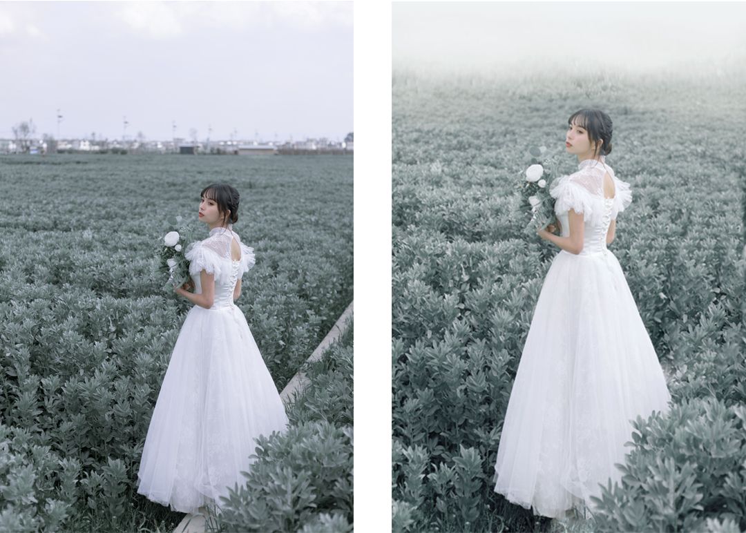 给大家分享ー下低饱和灰调婚纱的后期修片思路