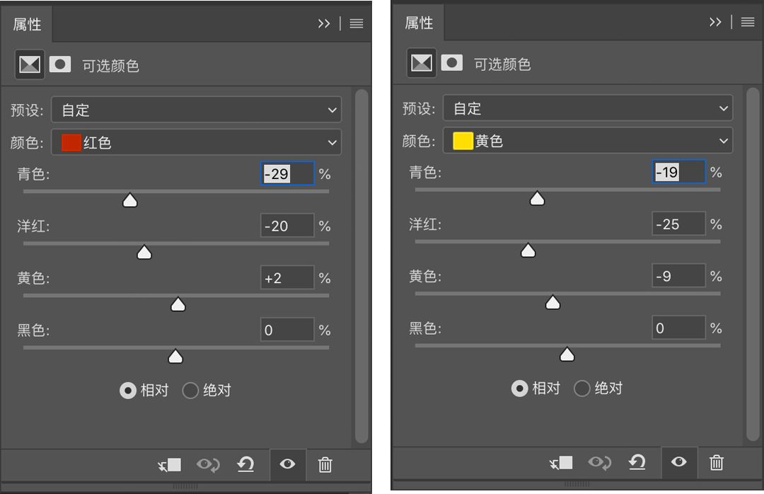 红原色主要控制肤色,肤色偏黄饱和度低可以使模特皮肤更加白皙。