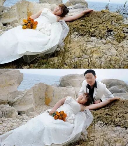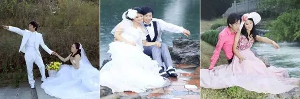 但现实中,婚纱照往往是土俗的、大胆的、奇幻的,拍的时候鸡飞狗跳。