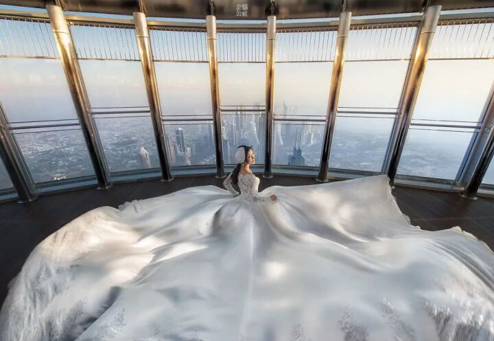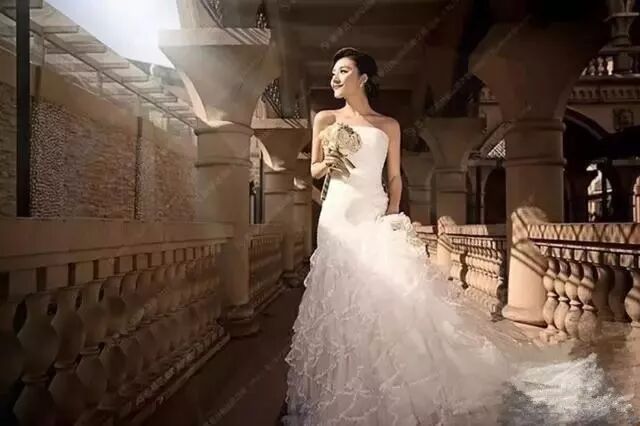 婚纱一定要翘到天上,最好能斜插整张照片对角线。