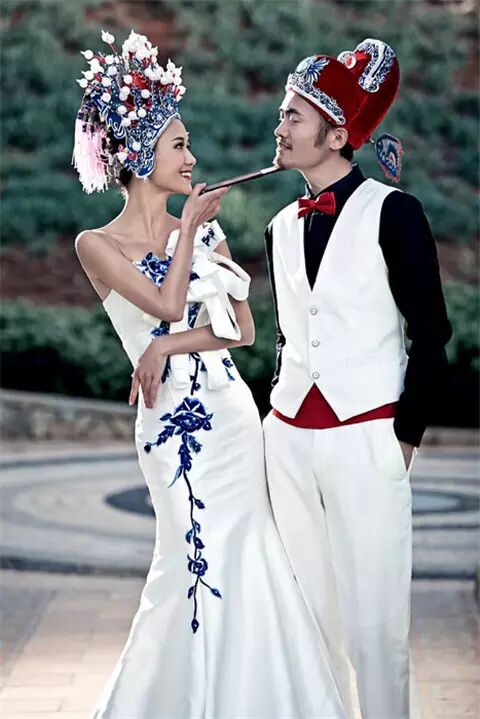 当凤冠霞帔邂逅唯美婚纱,将会擦出怎样的火花呢?凤冠搭配绣花白底婚纱,古典与潮流结合。这样的婚纱照,光是服装就让人难忘。