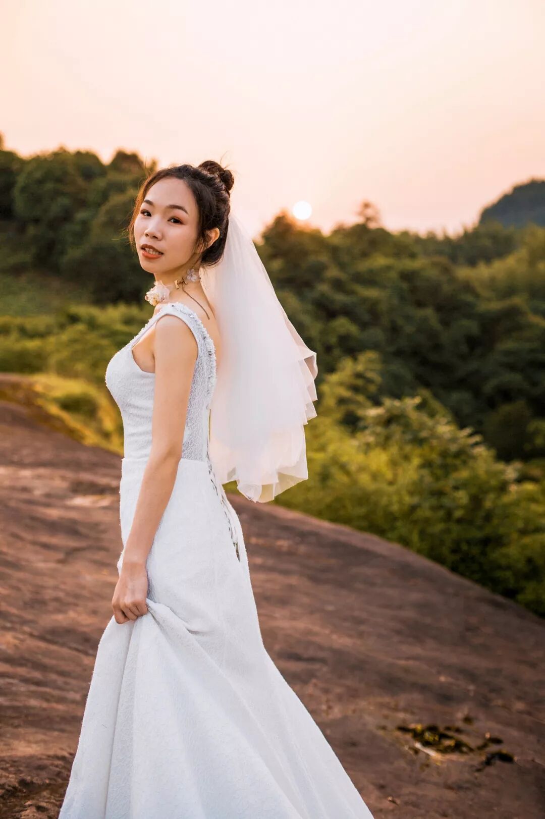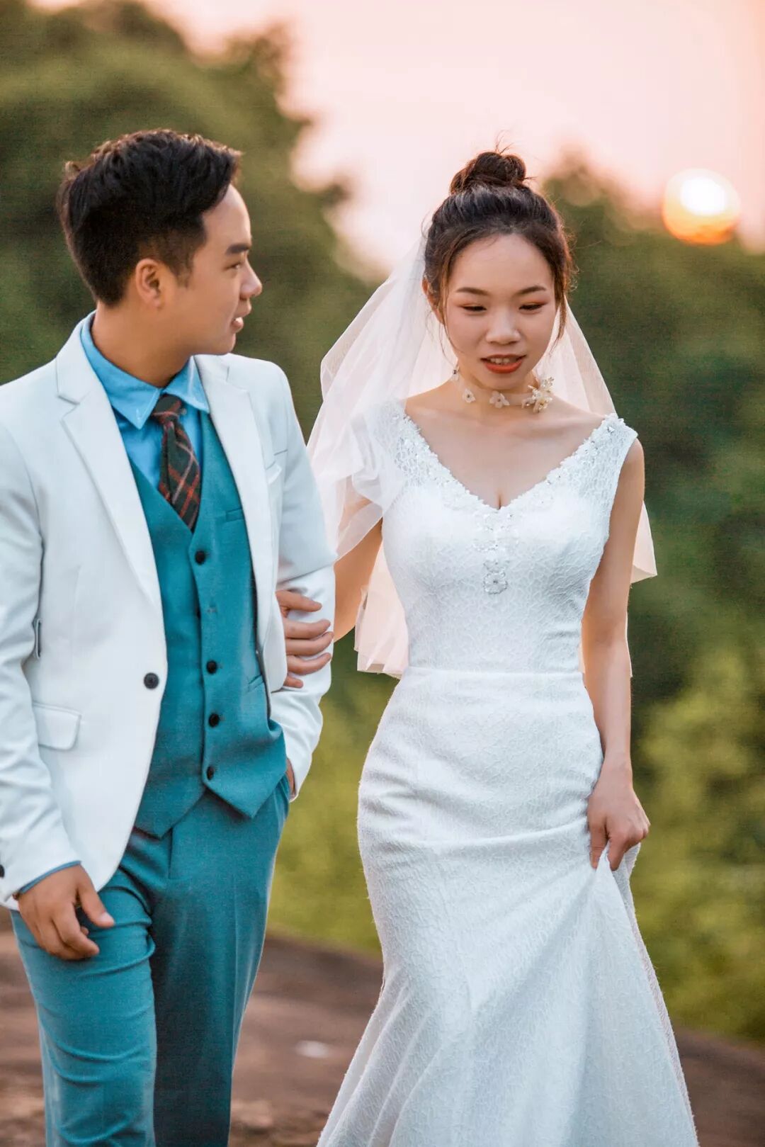 昏的夕阳中,身着华美的礼服,留下一个最难忘最特别的外景婚纱照