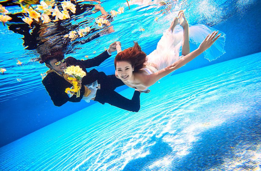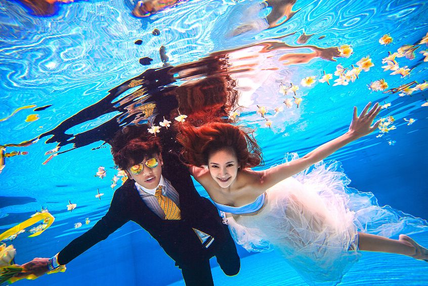 双鱼座的婚纱照太梦幻了。双鱼座天真而烂漫,总是会天马行空,想出一些不一样的点子。白色的裙摆在上面漂浮着,整个人做出一种在水下漫步的感觉,给人一种梦幻的感觉。