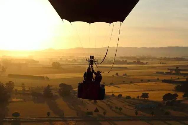 五彩的热气球缓缓上升,伴着缕缕晨曦