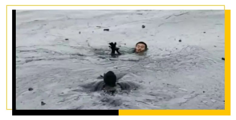 这时大火已经向他冲来,两名战友赶紧把他拉出来。