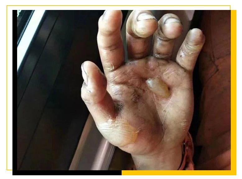 陈广礼就赤着脚,在滚烫的污油中继续指挥灭火,双脚全是烫伤。