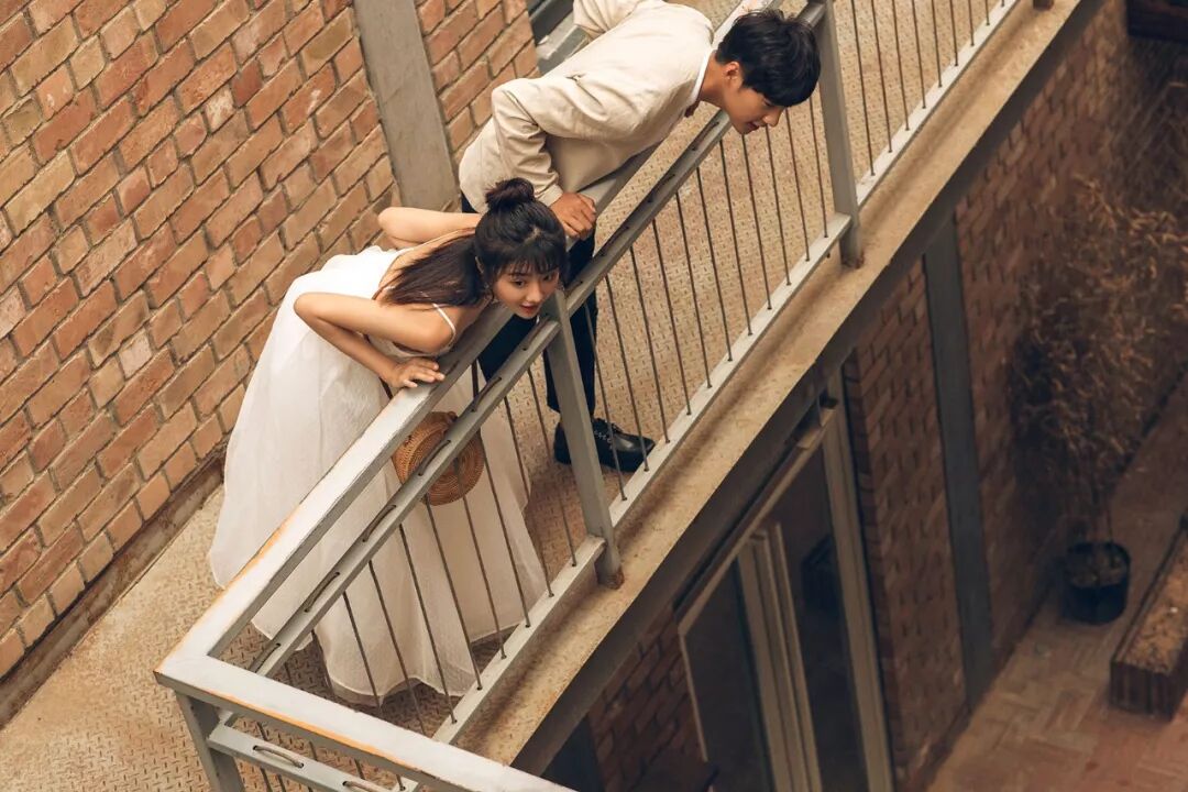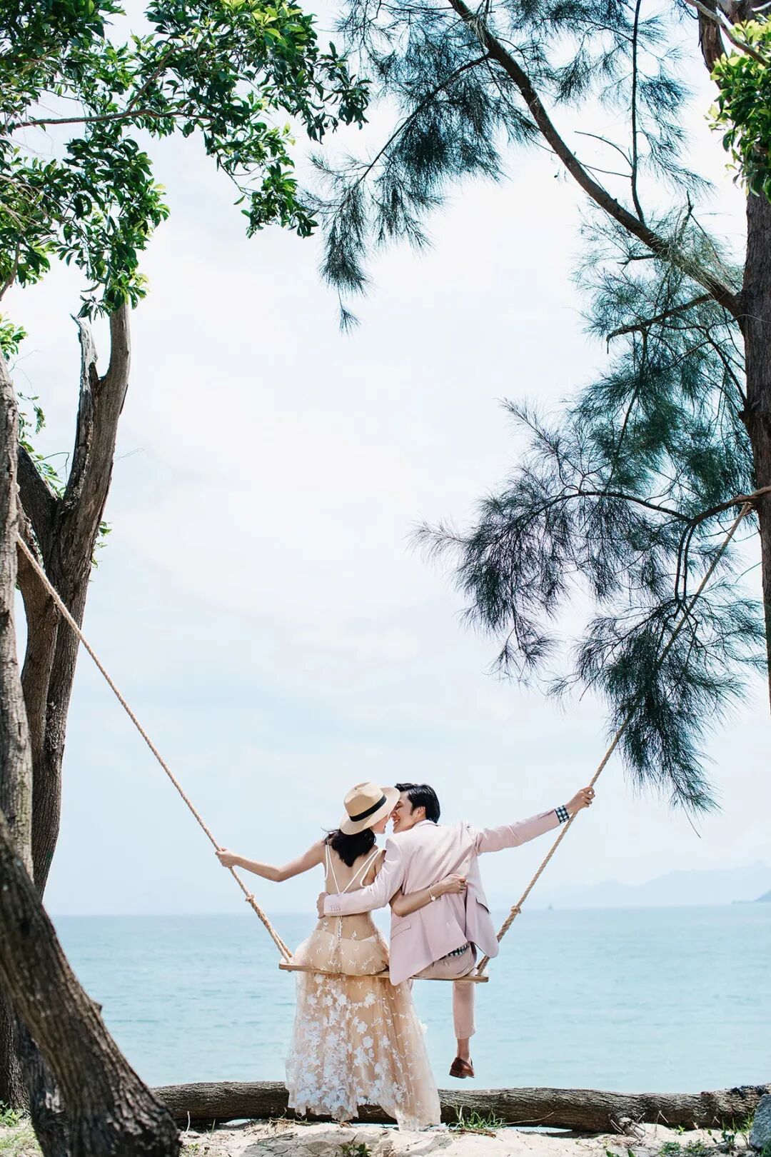 拍这样的婚纱照时,双方都要注意比赛。例如,在照片中,在海滩上,新婚夫妇站在桌子旁,背对着大海,新娘手拿着一朵花,微笑着向前挥手。新郎双手交叉,双脚站在新娘身边,这样的画面不仅自然美丽,而且营造出一种甜蜜的感觉。