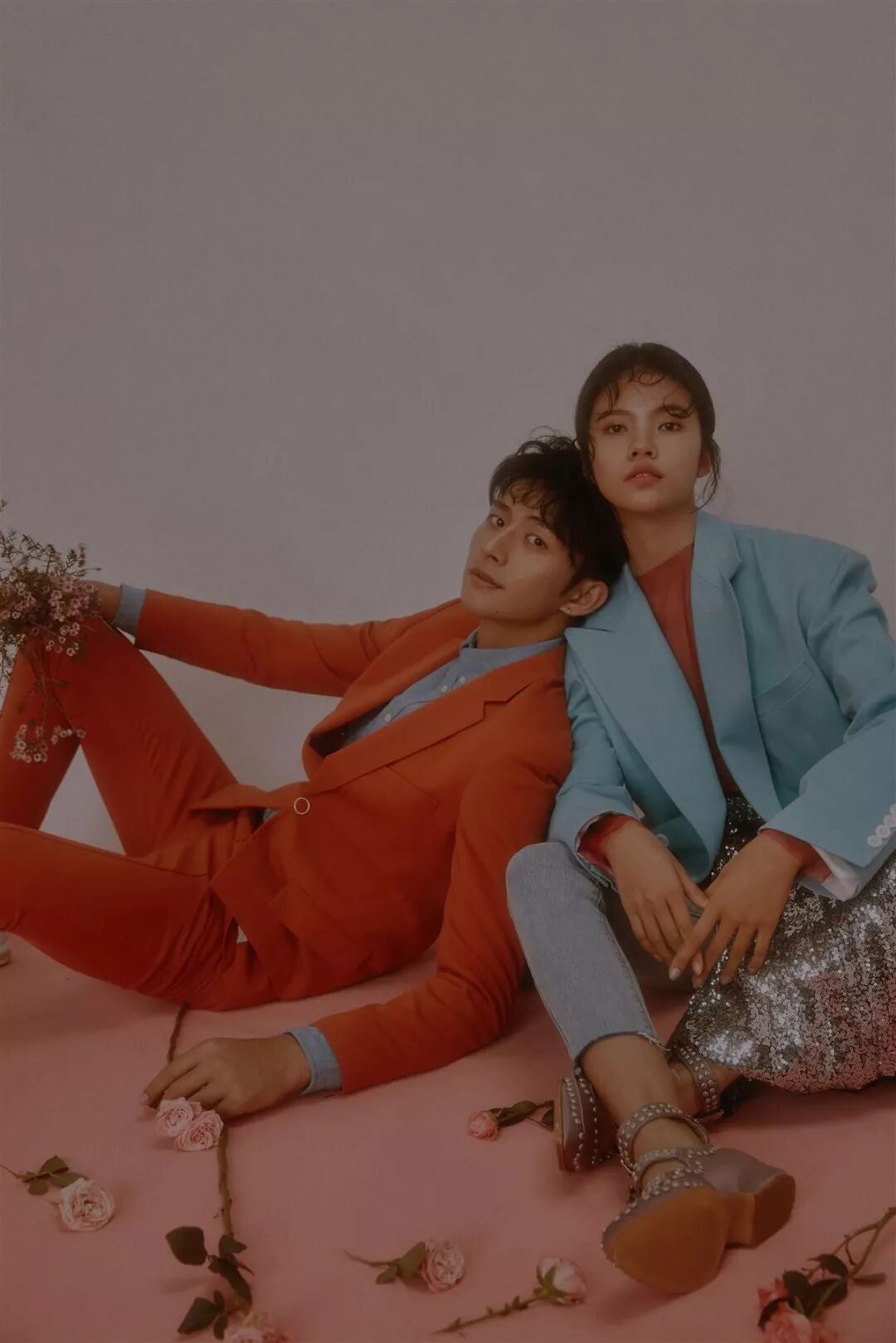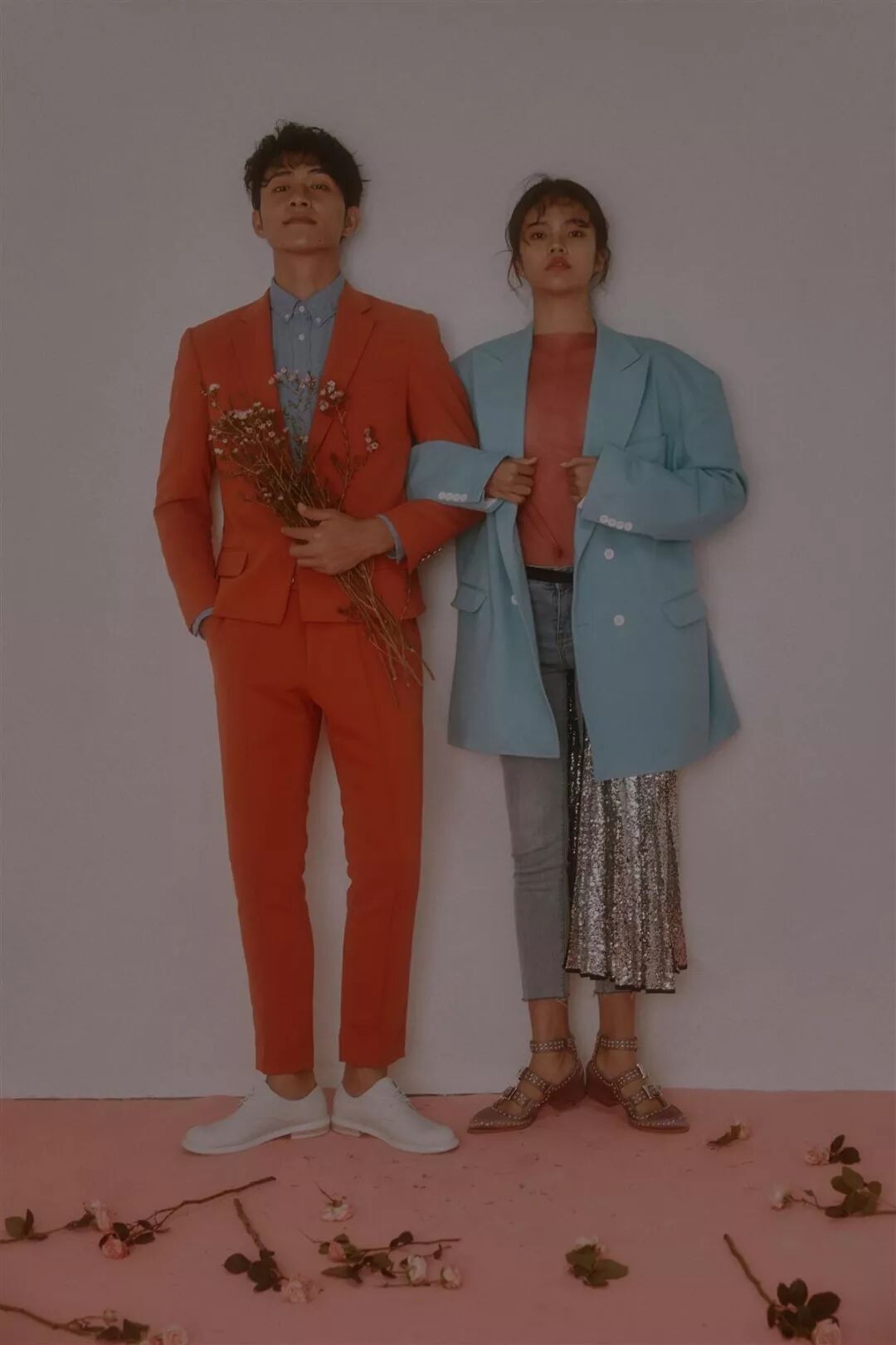 橘红浅蓝的撞色风格